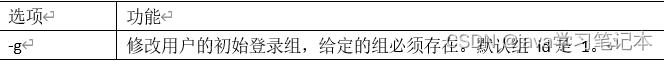 修改用户 1) 基本语法 usermod -g 用户组用户名 2) 选项说明