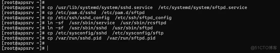 [root@appsrv ~]# cp /etc/ssh/sshd_config /etc/ssh/sftpd_config创建一个链接,使得可以通过rcsftpd命令来控制新的SFTP服务