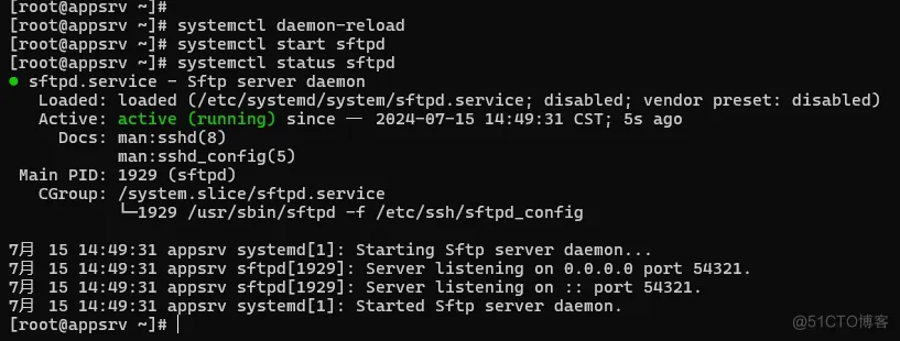 将 SSH 跟 SFTP 进行分离,要求 SFTP 监听端口为 54321,并且通过服务的方式进行启动或停止。