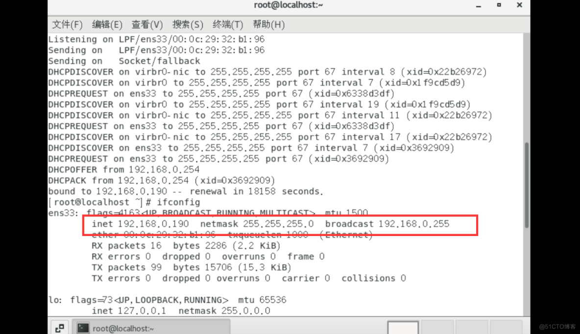 [root@routersrv ~]# dhcrelay 192.168.100.100客户端IN获取: