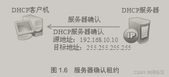 DHCP服务器接收到DHCP Request消息后,以DHCP ACX消息的形式向客户机广播成功确认。该
