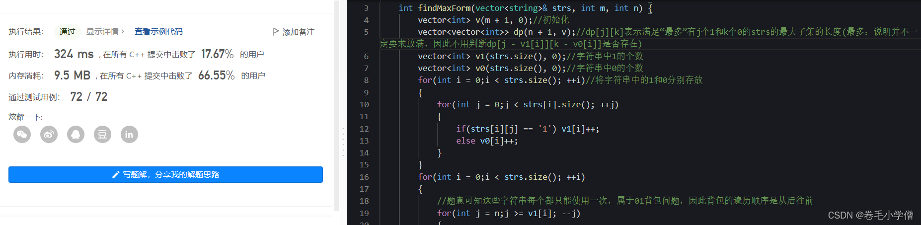 vector<int> v0(strs.size(), 0);//字符串中0的个数