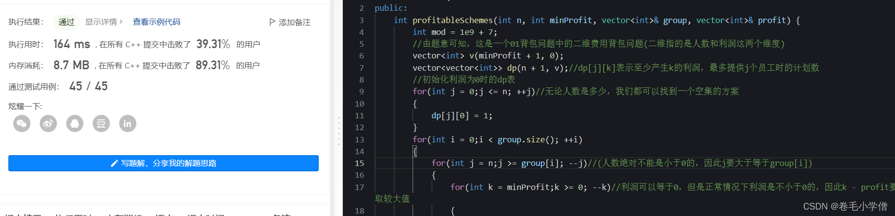 for(int k = minProfit;k >= 0; --k)//利润可以等于0,但是正常情况下利润是不小于0的,因此k - profit要和0取较大值