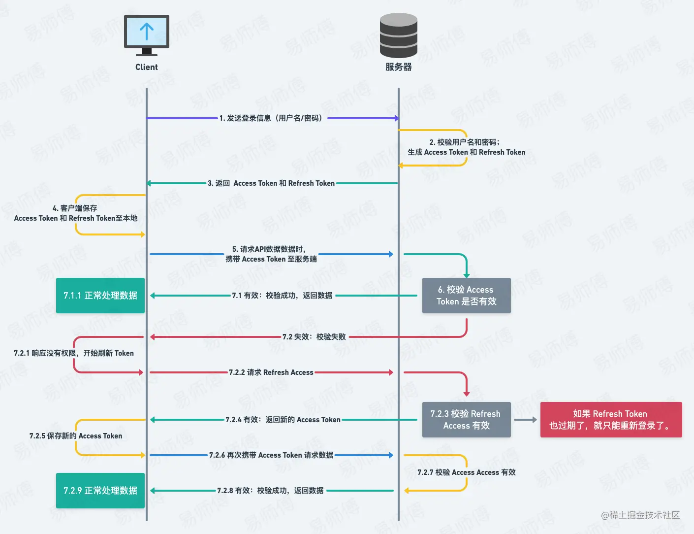 主站维护自己的 refresh-token,有效期较长,每次 token 过期后可以用 refresh-token 给自己续命请求新的 token,从主站跳转到子站,或者主站授权去其他页面,都是给其他页面 token,token 的有效期较短,过期了就得重新授权,所以通过 token 和 refresh-token 就可以做到相对安全的单点登陆或者授权,因为他们两个的失效完全不同。