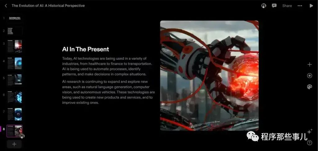 Tome 是一个制作 PPT 的 AI 工具,它是专为讲故事的人设计的创作工具,借助人工智能的力量,它成为了世界上第一个真正利用 AI 技术进行生成式叙事的格式,使任何人都能讲述引人入胜的故事。
