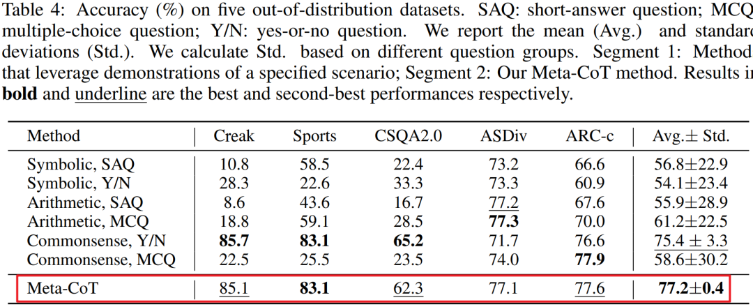 除此之外,作者还对五个分布外数据集做了的实验,进一步验证了Meta-CoT的稳定性和通用性。