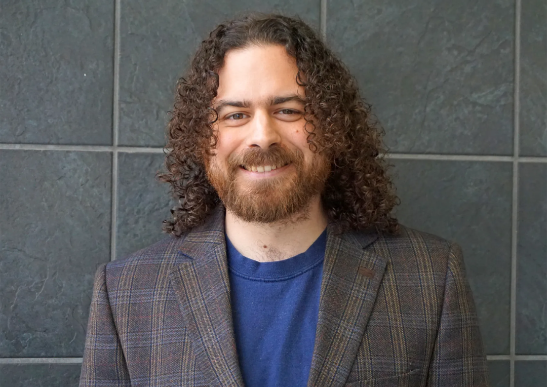 Marco Carmosino 身着蓝色衬衫和西装外套的照片。Marco Carmosino 在 1980 年代对一个重大成果的痴迷给他带来了灵感,让他在 20 年后为元复杂性领域带来了突破。