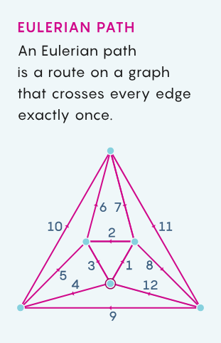 同样假设你有一个图,但你要做的是找到一条「欧拉路径」,即穿过每条边刚好一次的路径。同样,在检验可能的解方面,存在多项式算法,但求解这个问题也存在一个多项式算法。这里就没有不对称性。在复杂性理论中,某些路径似乎比其它路径更容易找到。