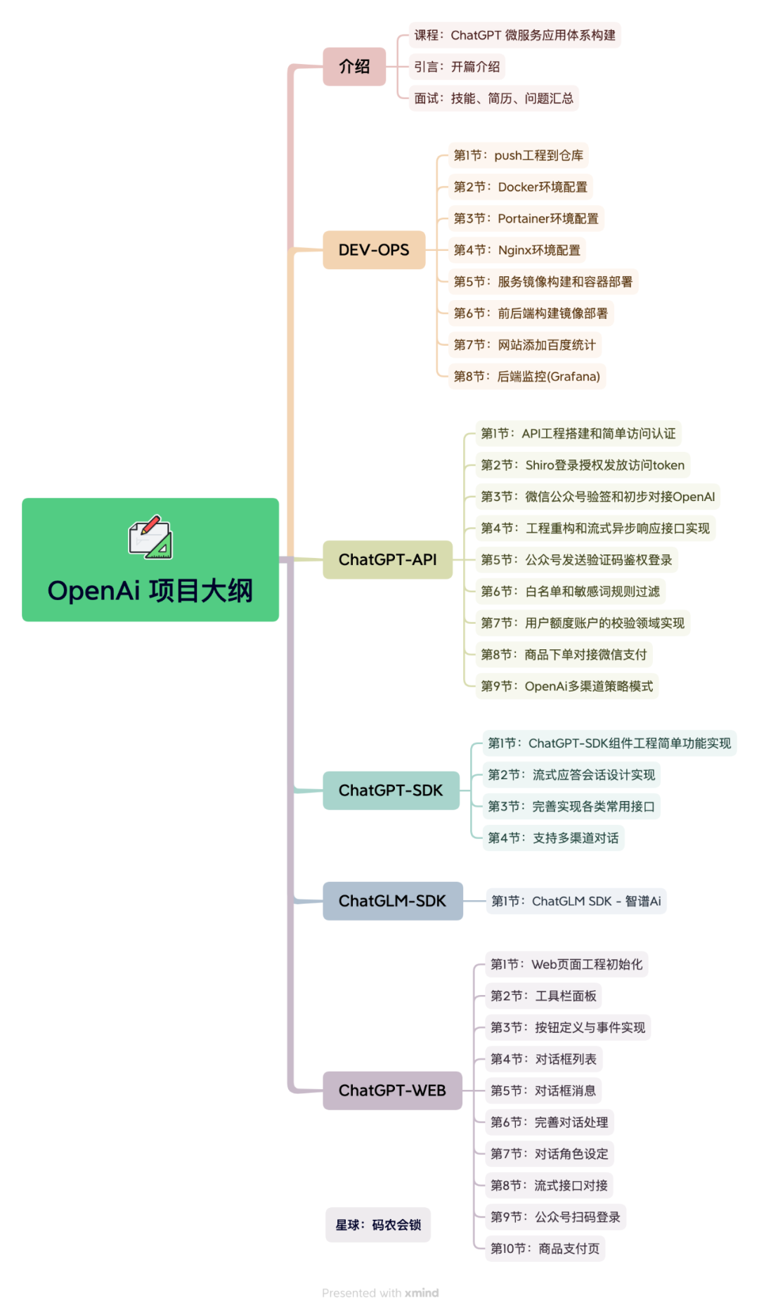 此项目,是按照互联网公司开发项目模式进行落地,逐个分支,逐步迭代完成。每个章节都会对应一个分支,并配文档和视频,讲解需求、讲解架构、讲解代码。 大家可以先看看课程的大纲,就知道可以学习到哪些东西了。