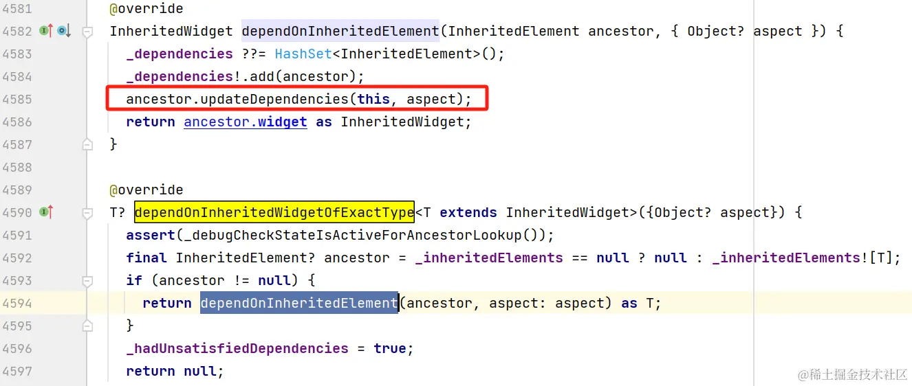 }这里有个前置知识,在《 Flutter 渲染机制 - 聚沙成塔》 第10章中,介绍过 InheritedElement 会维护依赖元素的映射,进行通知。凡是调用 dependOnInheritedWidgetOfExactType 的元素,都会被加入到映射中: