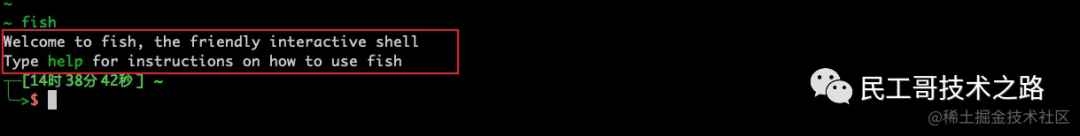 如下图, 每次我们切换到 Fish Shell 都会有 欢迎语 输出。