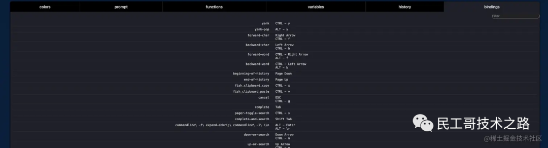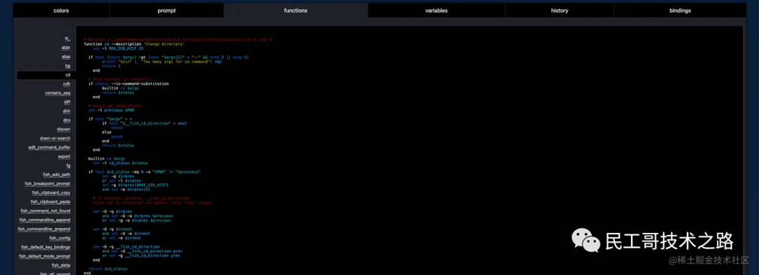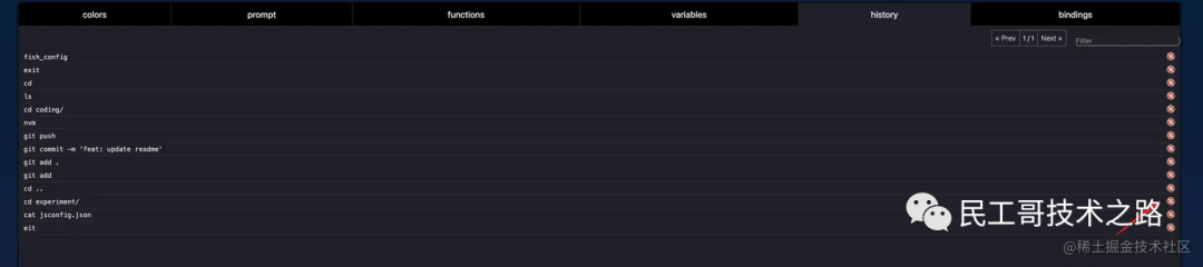Fish Shell 相对于其他 Shell 有一个比较有意思的功能, 就是可以通过浏览器来配置或查看 Shell 的主题、提示、功能函数、常量、历史记录、快捷键。