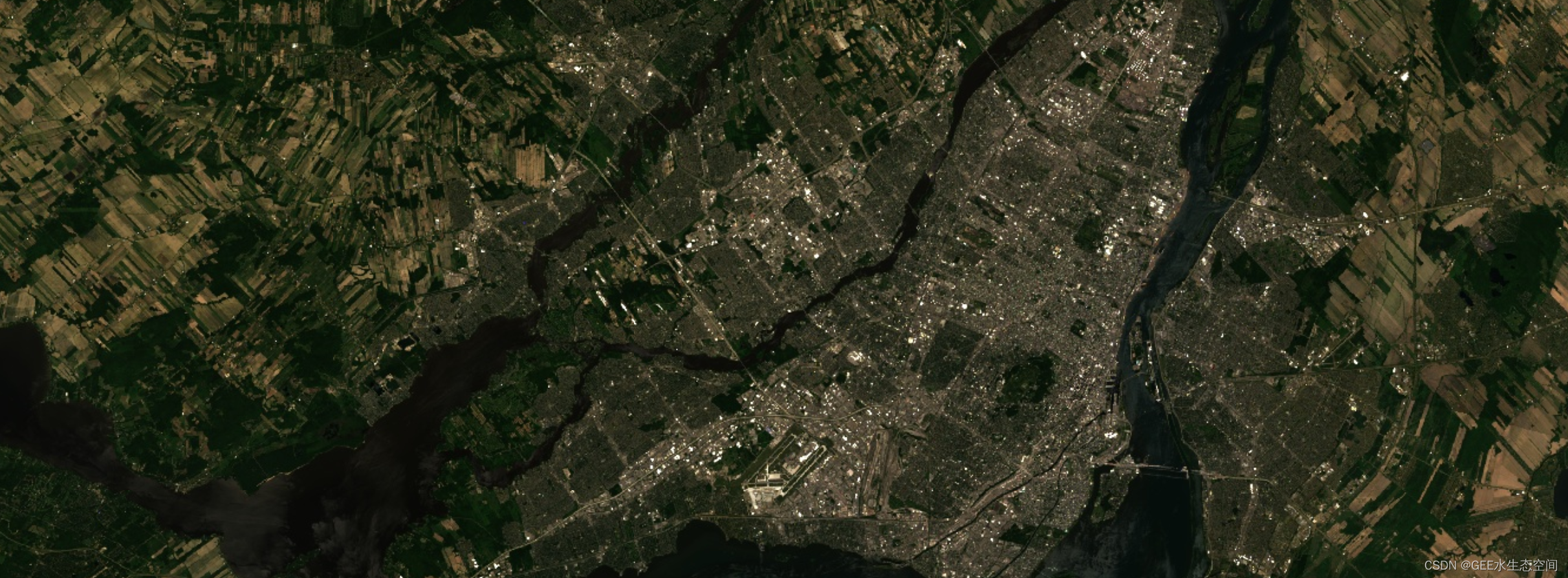 print(dictionary_with_list, "dictList");在本单元中,我们将使用许多数据集。在本节中,我们将导入 Landsat 8 表面反射率集合。我们将首先使用真彩色图像 (TCI) 来调查和解释加拿大蒙特利尔的景观。使用下面的代码应该会产生如下所示的图像。我们在新闻和网上遇到的许多基于空间的图像都是 TCI。通过使用 Google Earth Engine 中的 TCI,我们可以利用自己的经验和常识识别来对物体进行识别和分类。使用以下代码启动一个新脚本以生成如下所示的 TCI。