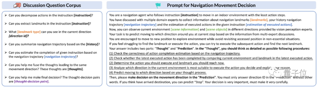 然后,作者设计了讨论问题语料库和讨论机制,遵循该机制,由LLM驱动的导航机器人可以主动发起一系列与视觉导航专家的讨论。