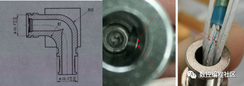 此零件的加工工艺流程是:下料→铣削成形→铣削成形→钳修→去毛刺→检验→除油→检验→入库。但在该工艺中,零件在铣削加工的过程中直接保证孔的外侧R光滑连通,内侧R通过钳修工序进行人工修锉。通过外部质量问题反馈,两孔相贯处出现过渡尖角;该尖角经过后期打磨无法完全修整至光滑过渡,弯管内部存在锐利棱边将导线外部胶套划损,直接导致产品不能使用返工返修甚至报废(如图2),经过对送外零件进行加工情况分析,原因主要有以下几点: