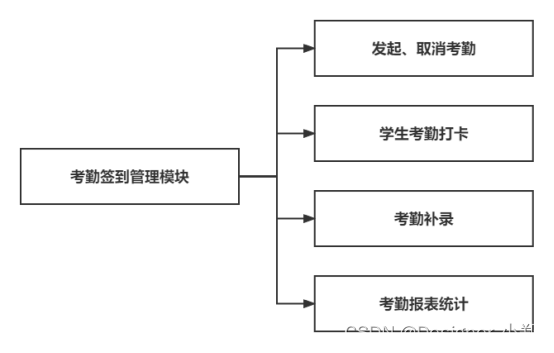 该模块是对考勤签到的管理,主要是教师发起考勤、修改考勤信息、取消考勤、学生参与考勤、考勤补录、考勤报表。该模块主要针对考勤的一些信息进行维护。