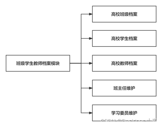 该模块是对班级、学生、教师进行管理。包括对学习委员进行管理,主要有班级、学生、教师的信息以及学习委员的设置,其中包含了对班级、学生、教师的信息进行添加,搜索,该模块可以详细查看班主任的信息档案。