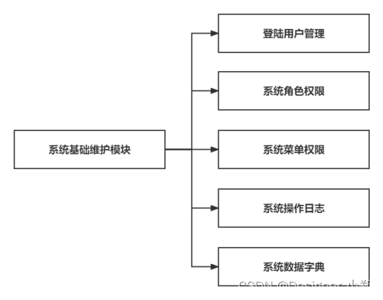 系统基础支持模块的功能包括了登陆用户、用户角色、系统菜单、日志、数据字典的模块支持。