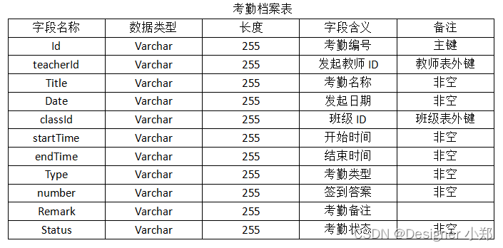 考勤签到管理模块,录入了教师发起的考勤信息,包括考勤的开始时间、结束时间、考勤缘由、参与班级等,可以通过此模块来发起考勤、操作考勤补录、查询考勤报表。