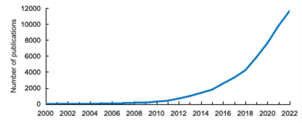 近年来,肠道微生物组的学术论文数量呈指数型飞速上涨(图1),但在核酸水平上所用的主要研究工具目前依然是近二十年前出现的宏基因组和宏转录组。