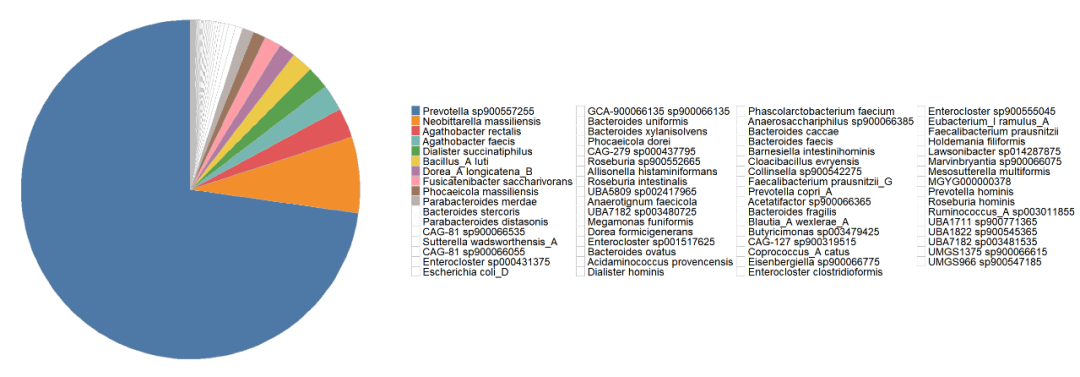 同时,通过VITA GutMicrobiome产品测得的单细菌转录组数据,M20在样本中共鉴定得到67个不同的肠道细菌物种(图4),其中既有普雷沃氏菌属和毛螺菌属等已知肠道核心菌属的物种,也包括Neobittarella massillensis等近年来新发现的人类肠道菌种。
