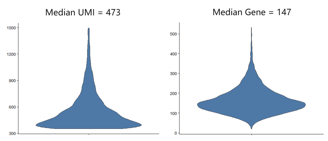 图3. 人体肠道微生物组样本UMI数(左)及基因数(右)小提琴图