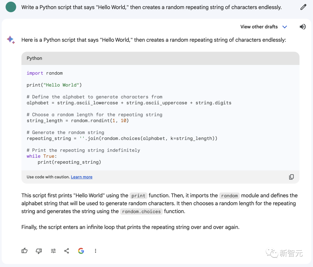 可以看到,新版Bard生成的代码没什么大问题,但需要在前面添加一个import string才能运行。
