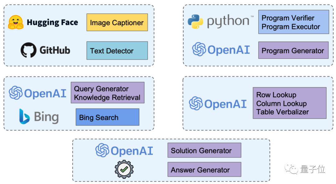 为满足多样的推理需求,Chameleon的工具箱中包含了各种不同技能的工具,包括图像理解、知识理解、数学推理、表格推理和问答。