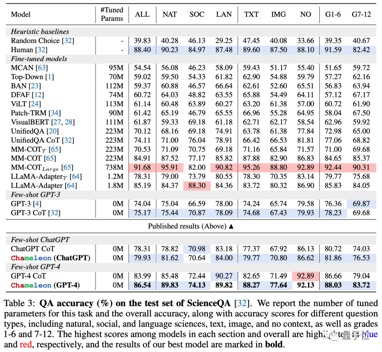 详细的评测结果也充分证明了Chameleon模型在ScienceQA任务上的有效性。