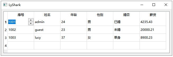 }运行后,序号部分与薪资部分将变成一个SpinBox组件,读者可自行调节大小,如下图;