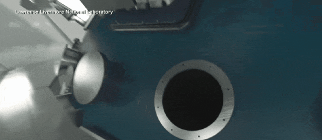 7月30日,NIF的192束激光向悬浮在金圆筒中冷冻的氢同位素氘和氚小球发射了2.05兆焦耳的能量。