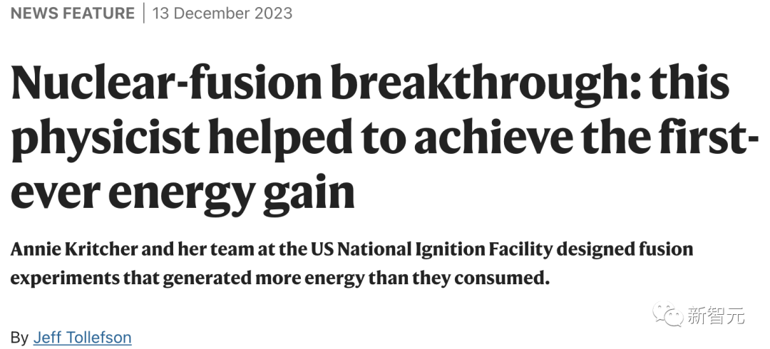 而整个核聚变计划的核心人物之一,物理学家Annie Kritcher,也成功入选了Nature年度十大科学人物,