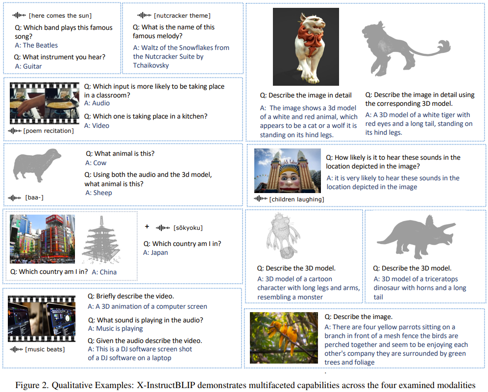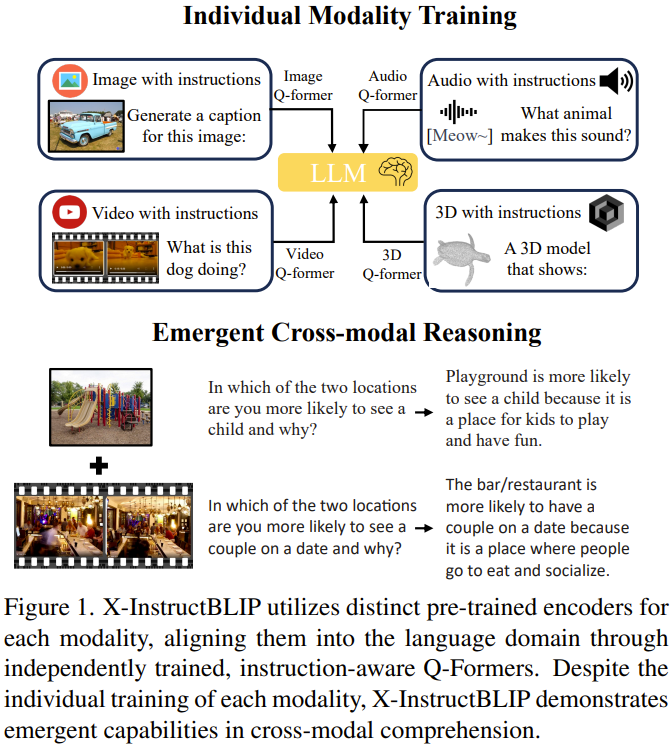 X-InstructBLIP 无缝地整合了多种模态并且这些模态各自独立,从而不必再使用联合模态数据集,同时还能保留执行跨模态任务的能力。