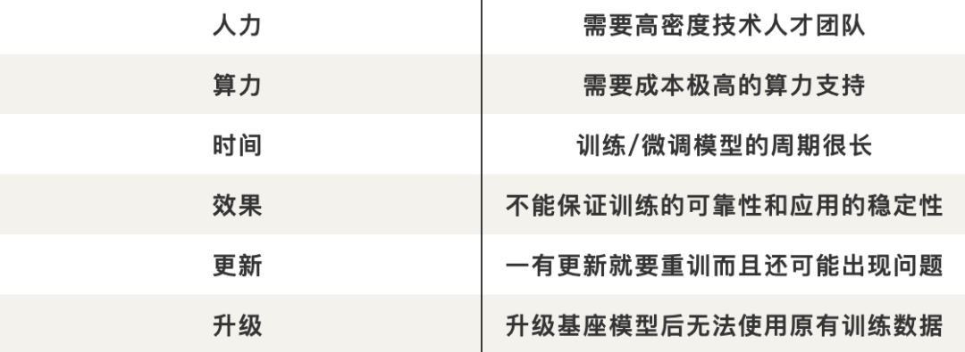 此外,大部分企业数据都是结构化的数据,模型无法准确记忆,并不适合用来微调。