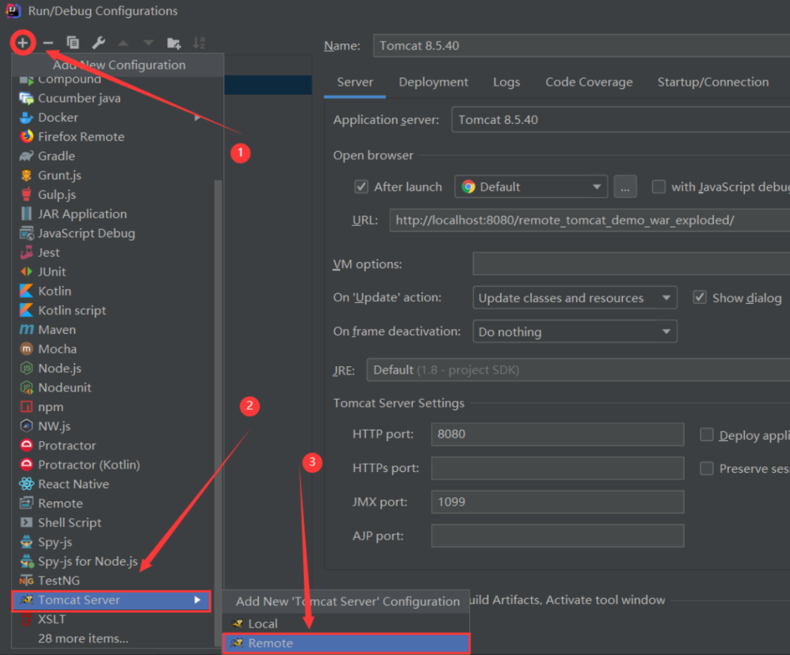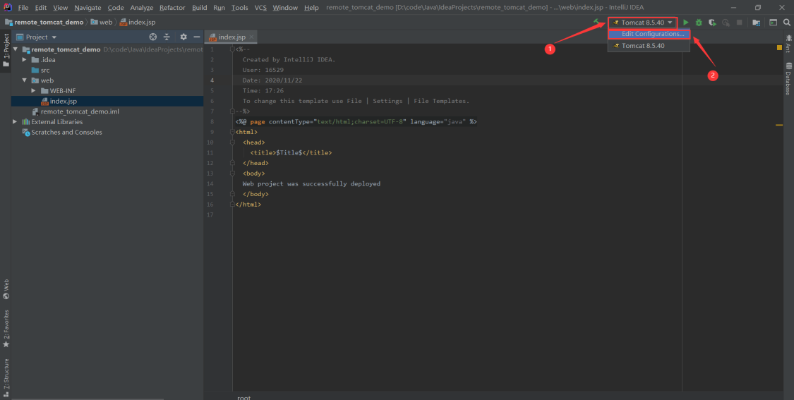 1、选择 Edit configulations,添加远程Tomcat服务器;