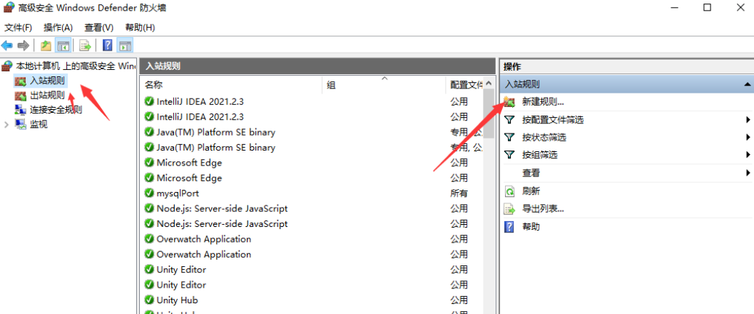 firewall-cmd --permanent --add-port=8080/tcp可视化:打开防火墙,防火墙高级设置,给入站规则新建规则,选择TCP端口填8080端口号,选择允许所有连接,完成;