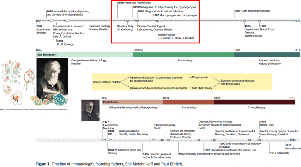 working with natural yeast infection in Daphnia, he reported on the antimicrobial activity of phagocytes. In 1887, he described the two types of professional phagocytes in vertebrates, macrophages and neutrophils, the latter initially called “microphages” (Metchnikoff, 1893). #https://www.frontiersin.org/articles/10.3389/fimmu.2012.00174/full