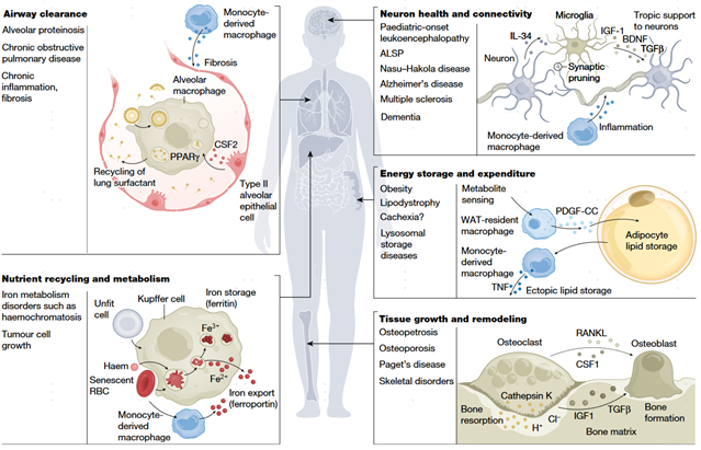 巨噬细胞的广泛作用已经被广泛讨论,在不同组织有不同的作用。以其多样性,而在不同组织和器官的巨噬细胞功能和结构差异。以其免疫功能,而在清除病原体、清除死亡细胞、调节炎症反应和促进组织再生等场景中不可或缺。