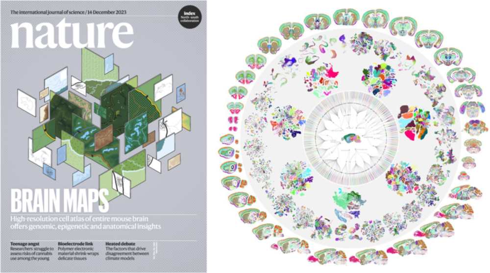 Nature特刊封面十篇连发,完整小鼠大脑细胞类型图谱。图源:nature