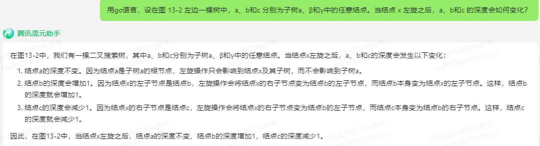 因此,在图13-2中,当结点x左旋之后,结点a的深度不变,结点b的深度增加1,结点c的深度减少1。
