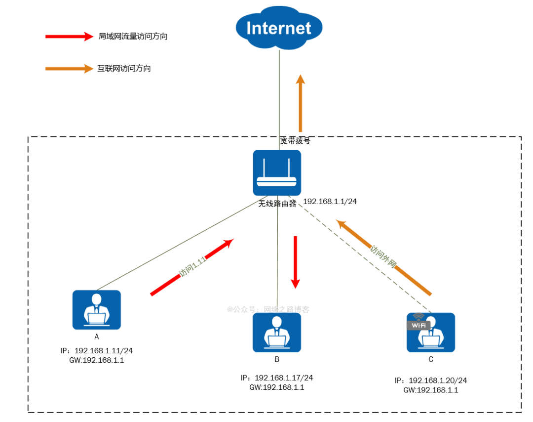 这个就是这篇文章想说的内容了,很多入门书籍以及课程里面还是引用的按OSI的分层来把对应的设备属于几层,对于初学者来说,很容易就把交换机就是工作在二层的设备,路由就工作在三层的设备,对于现在的网络设备发展来说,这显然就有点呆板了,就拿上面的家用路由器来说,它真的就只工作在了三层吗,显然不是,因为它有LAN(二层口)以及无线接入的功能,完全可以不接三层WAN口,电脑之间直接接LAN口,当交换机使用,同一网段的局域网之间互通是没任何问题的,这就是二层设备,如果需要访问互联网,通过WAN口处理,它又是三层设备。