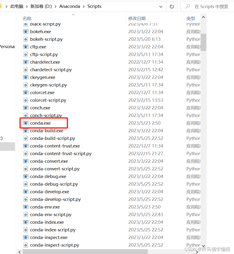 如果找不到文件,咱自己添加一下;在安装的位置;找到conda.exe文件,复制到自己系统环境变量中去;