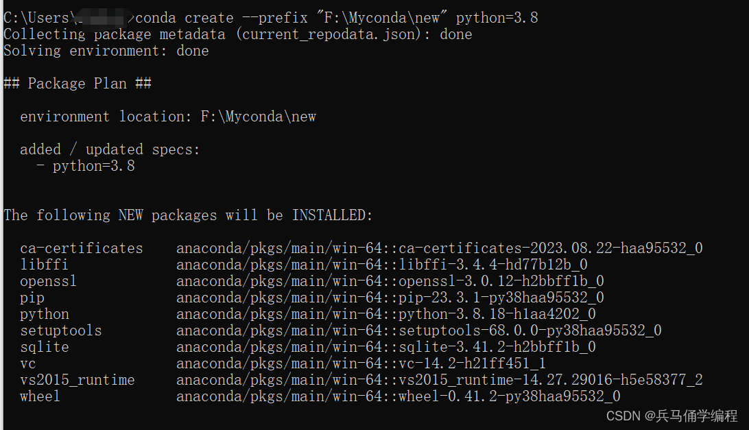 当然你也可以指定命名:conda create --prefix "E:\myconda" python=3.8