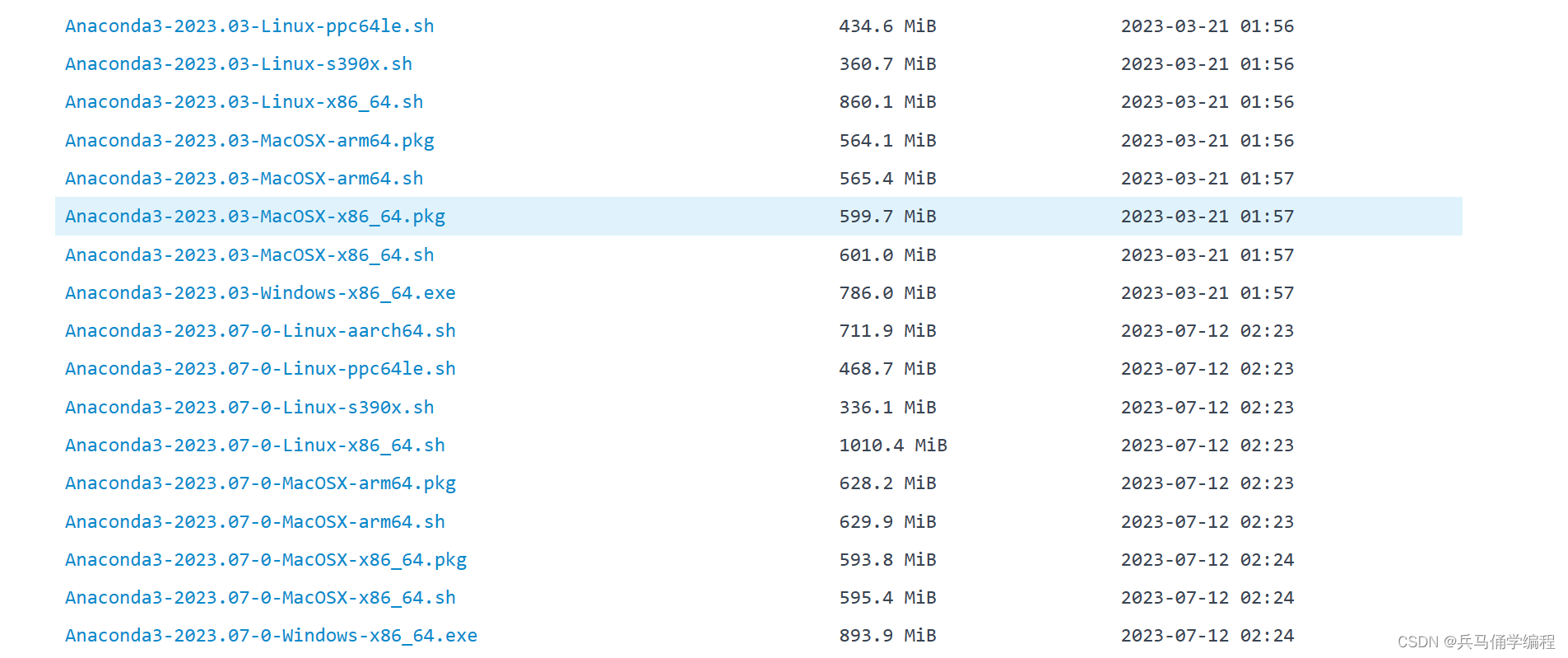 打开后可以选择适合自己系统的安装包(win是exe,linux是sh),然后可以根据后边的日期找到最新版本,一般都选3.0的版本,因为2.0是给python2用的