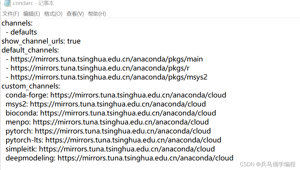 然后再C盘用户(uers)查看你的 .condarc后缀文件把里面的内容删掉,换成