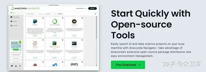 Anaconda是专门用于数据科学的Python发行版本(垂直版),它包含了Python、conda、上百个数据科学第三方库等,是一个大而全的Python数据科学百宝盒