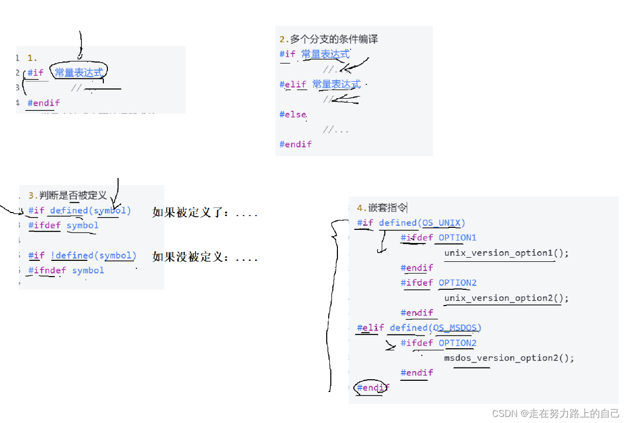 在编译一个程序的时候我们如果要将一条语句(一组语句)编译或者放弃是很方便的。因为我们有条件编译指令。在预处理阶段,如果满足条件执行后续语句,如果不满足,就不执行 比如说: 调试性的代码,删除可惜,保留又碍事,所以我们可以选择性的编译。