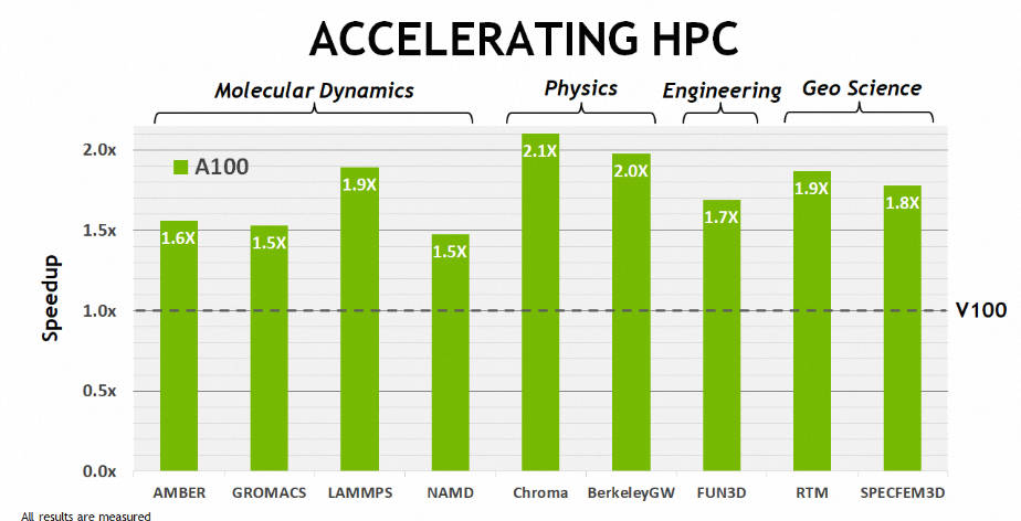 A800 虽然在互联带宽上有所降低,但和 A100 在双精方面算力一致,在高性能科学计算领域没有影响。