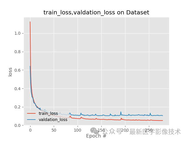 4、搭建VNet3d网络,使用AdamW优化器,学习率是0.001,batchsize是1,epoch是300,损失函数采用二分类的dice和交叉熵。