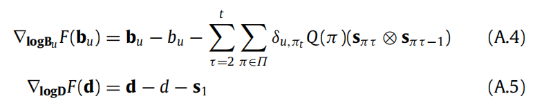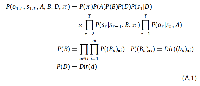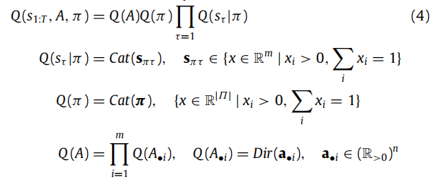 这里, (Bu)•i and (bu)•i ,它编码了从一个状态到下一个状态的转移概率,以及相应的 Dirichlet 参数 bu。此外,还需要定义相应的近似后验,用于学习: